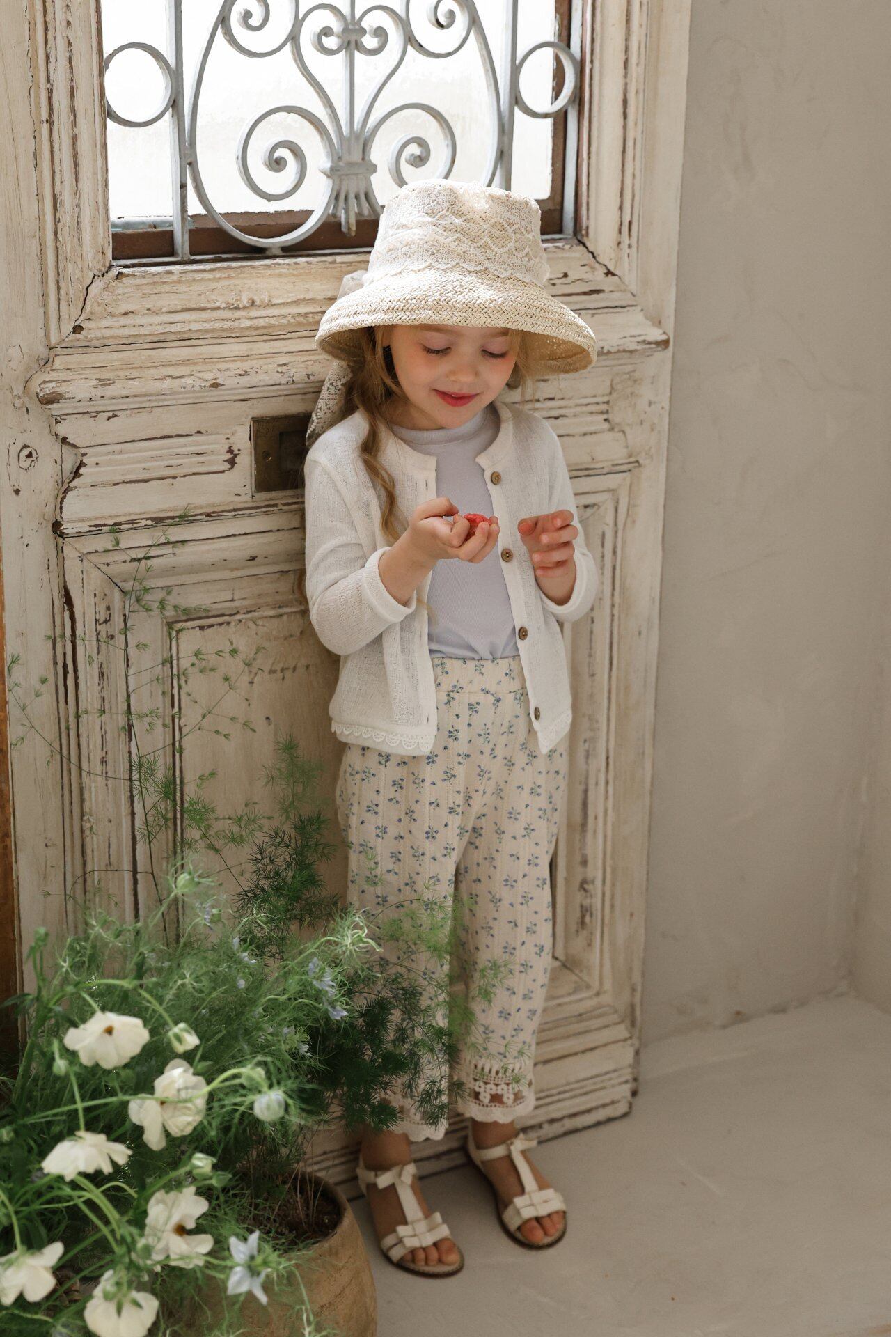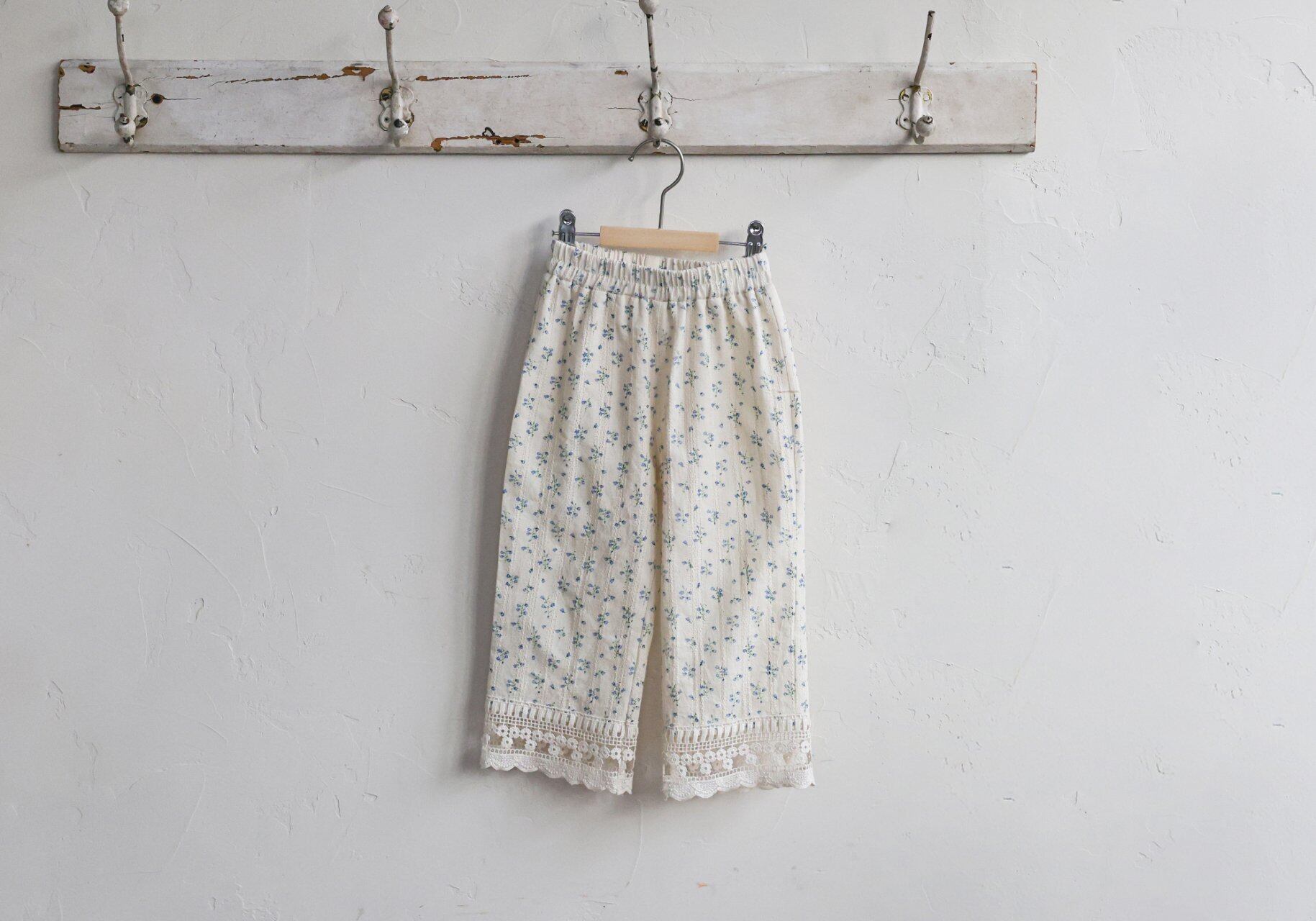 裾には立体感のある幅広の刺繍レースをあしらい、歩くたびに足元から愛らしさが感じられるデザインです。