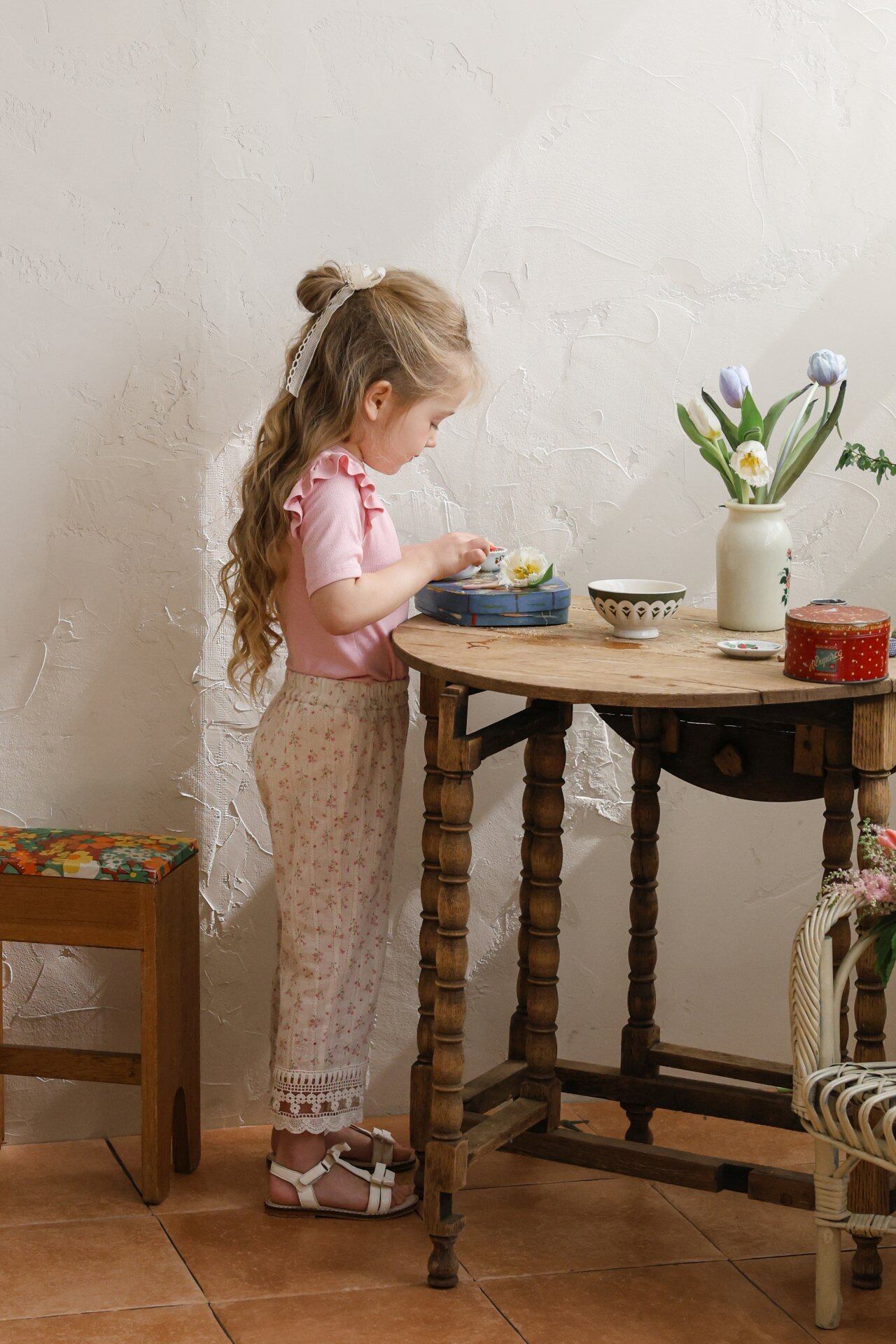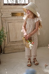 感性あふれるヴィンテージフラワーパターンと、表情のある生地感がナチュラルでラブリーな雰囲気を演出します。