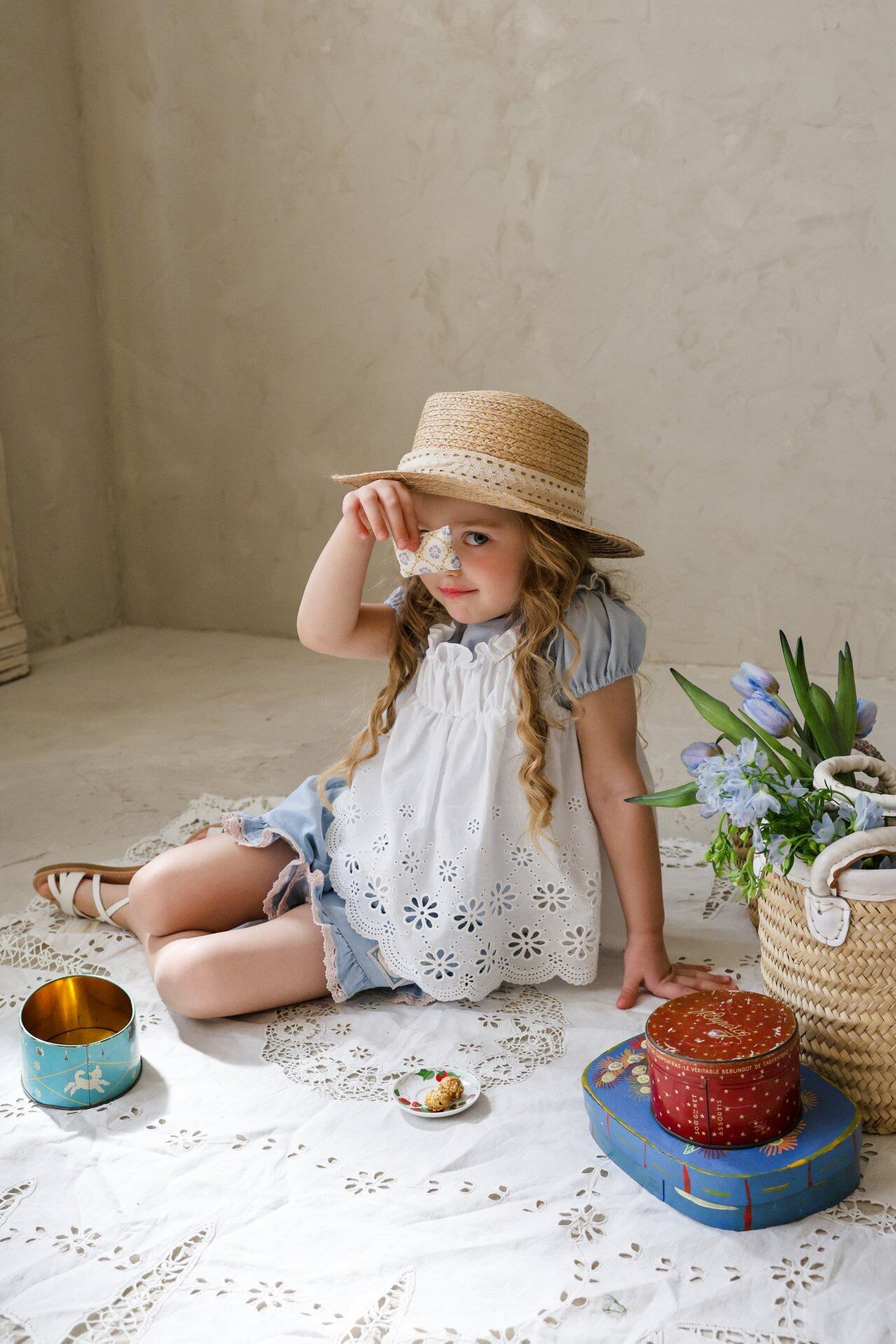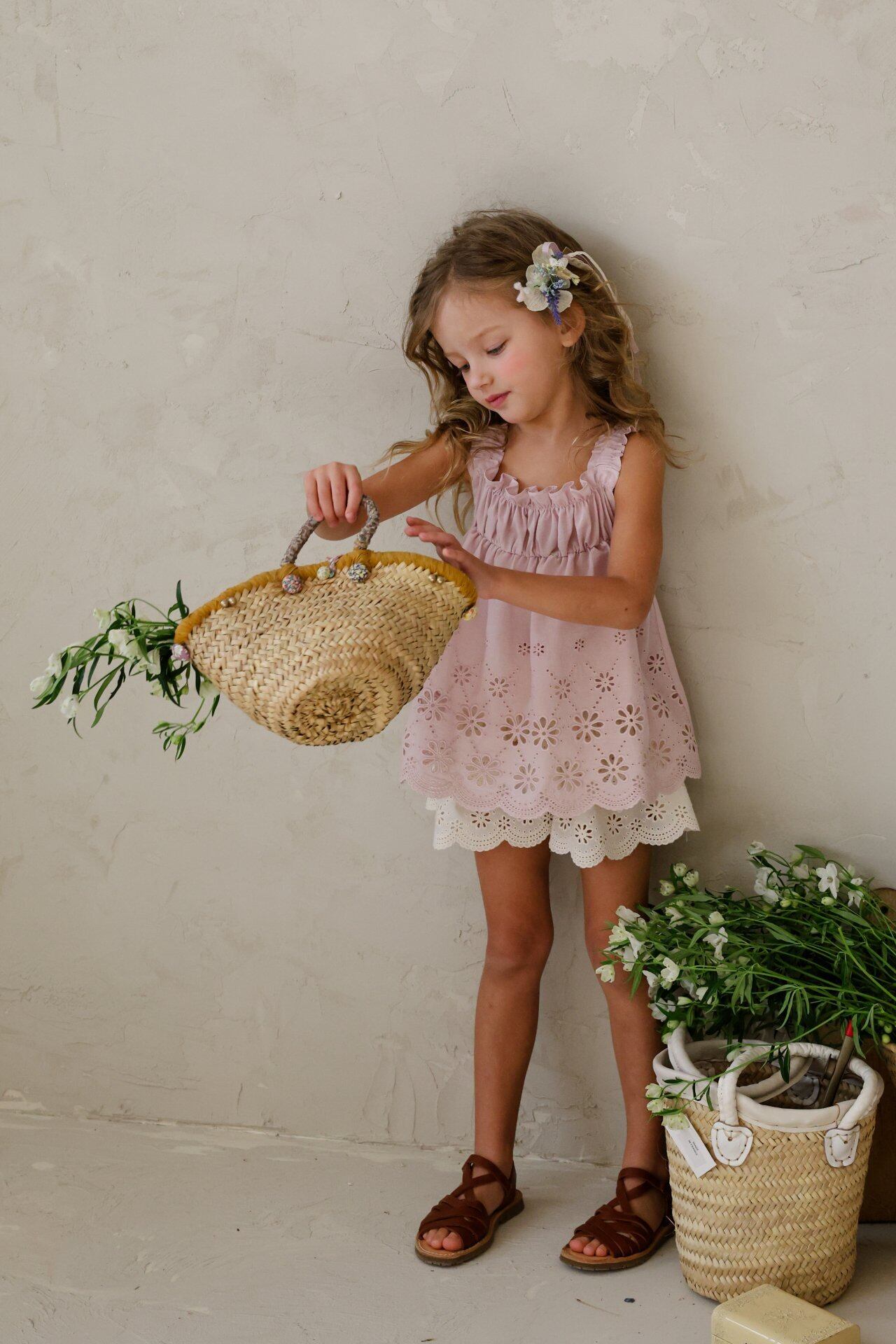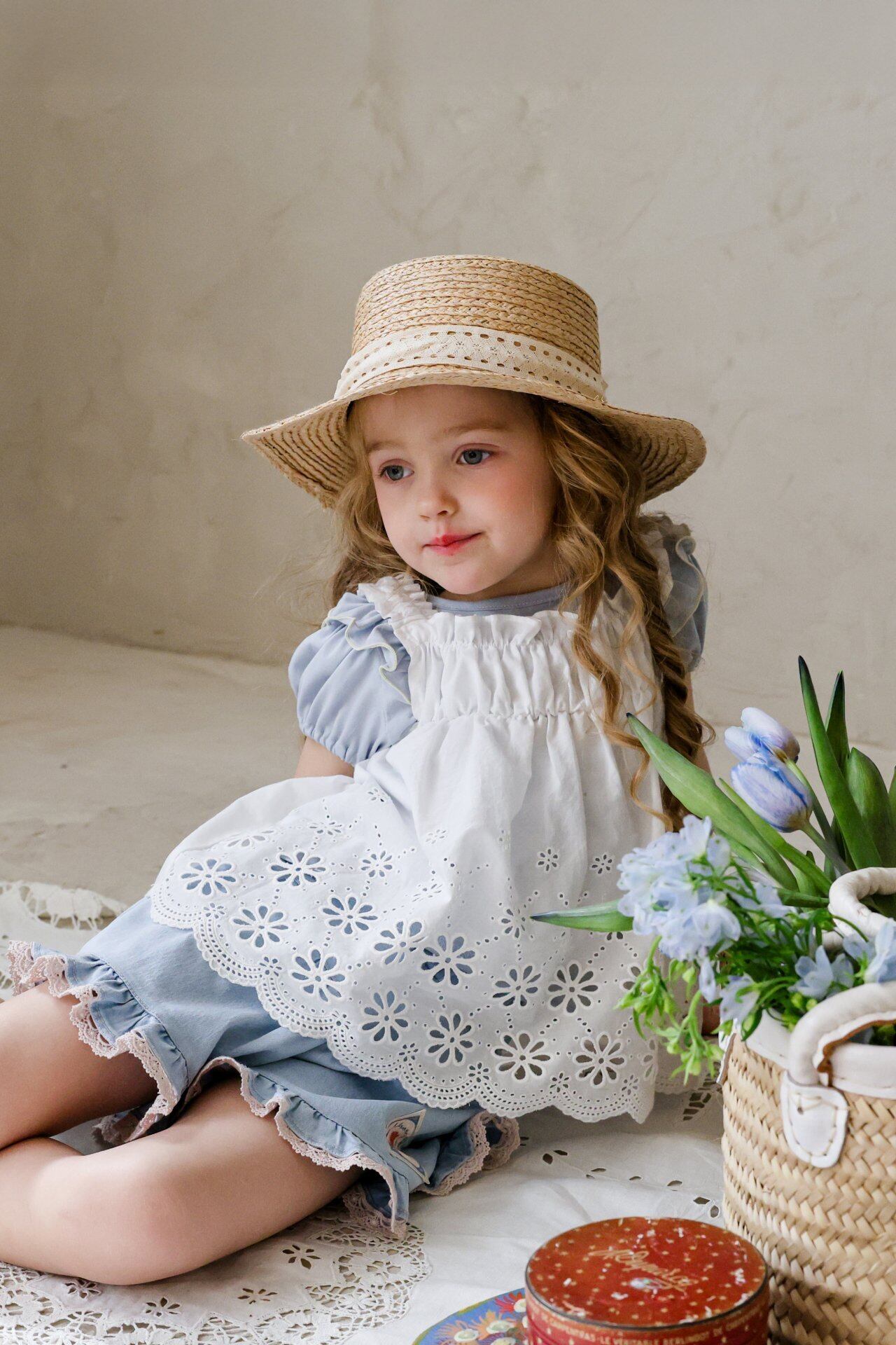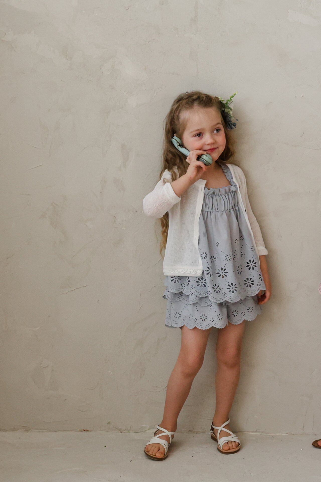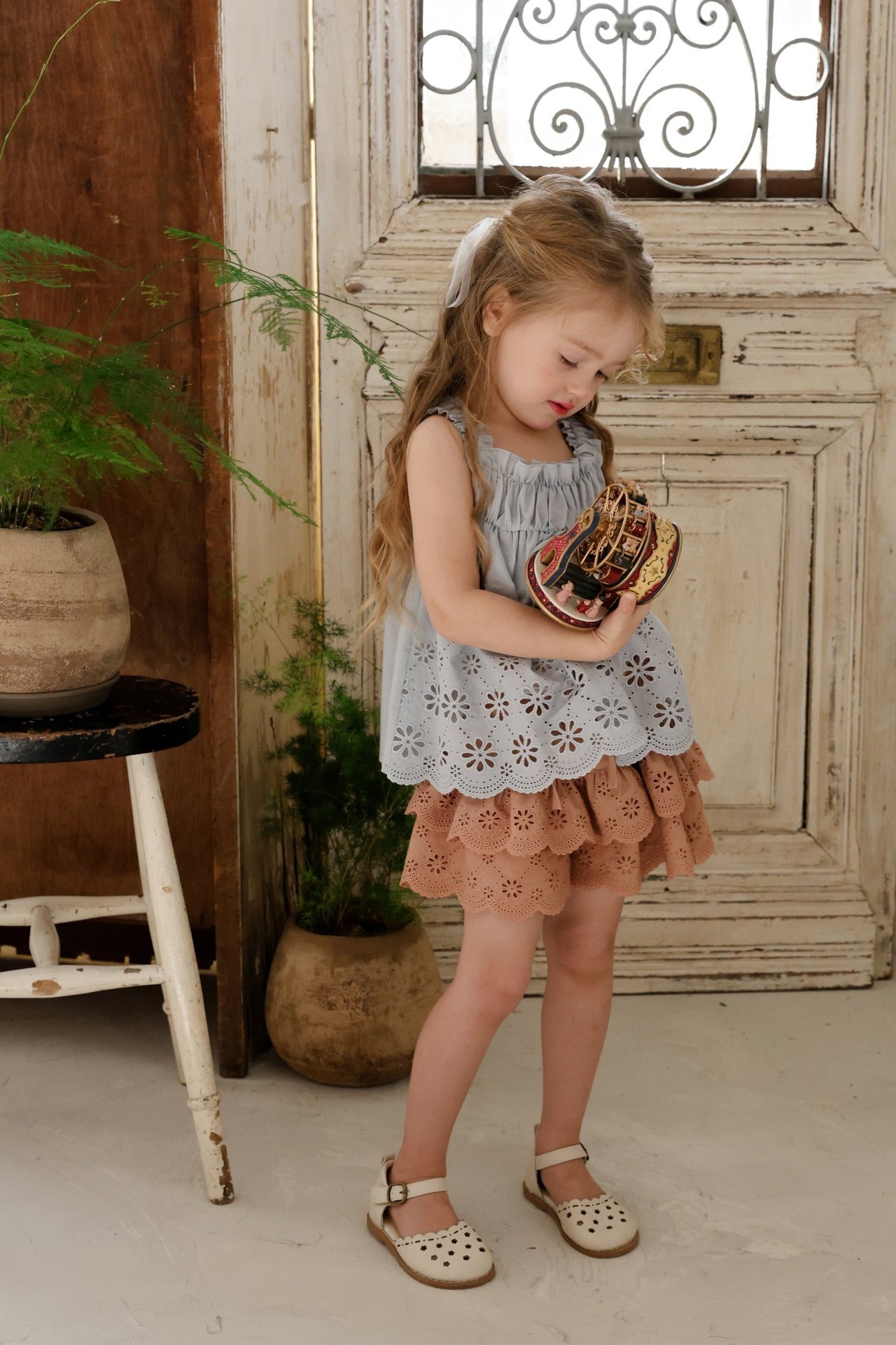 繊細なレースデザインとパンチングディテールをあしらい、夏でも涼しく軽やかに着用でき、やさしく広がる愛らしいムードが魅力のアイテムです。